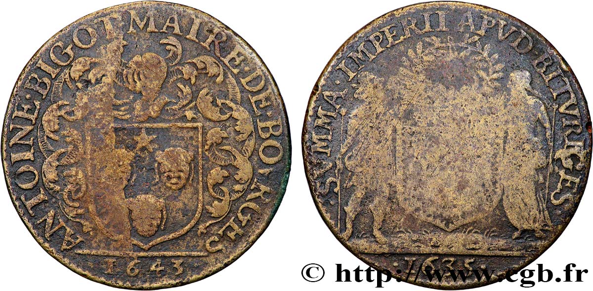Titulature avers : ANTOINE BIGOT MAIRE DE BOURGES - 1643.