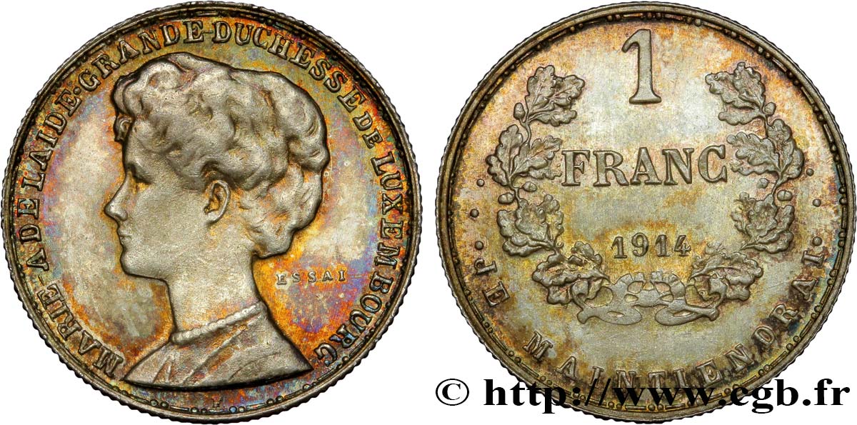 fwo_391630 - LUXEMBOURG Essai 1 Franc Marie-Adélaïde 1914 Bruxelles